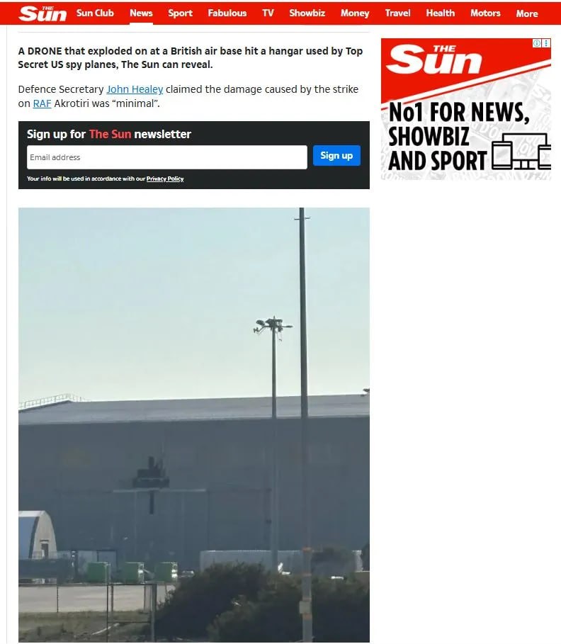 @olegcyprusПишут, что эту дыру в стене ангара сделал дрон, который прилетел по Акротири несколько ночей назад.