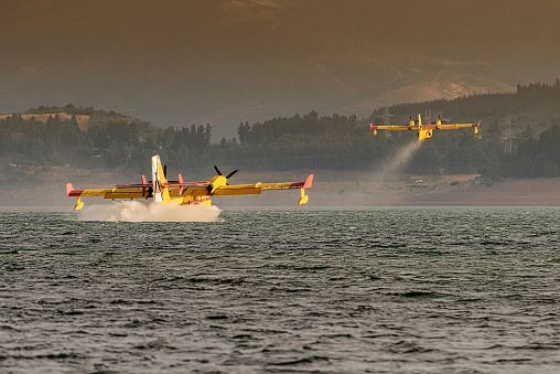 Canadair CL-415, 6 тонн воды берут. Греческие, наверное. В Греции 7 таких самолетов и ещё 11 предыдущей модификации, CL215