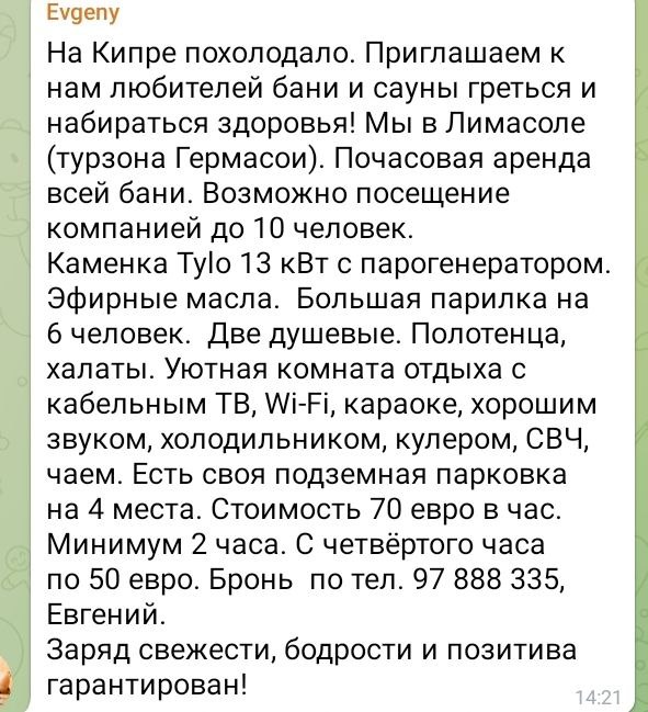 привет. в лимассоле посоветуете какую то сауну/хамам компанией сходить?