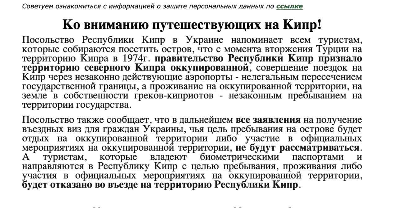 @olegcyprusВиктория, сам факт прилёта на оккупированную часть и есть нарушение.