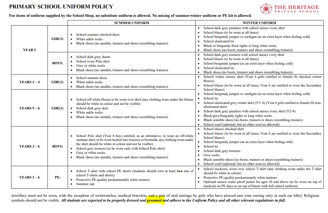 В LITC гундят конечно про волосы, но не так, чтобы активно. Форму тоже требуют, но она здесь достаточно удобная, в жаркое время вообще футболка (форменная с логотипом) и шорты для мальчиков, у меня мальчик (любые, был бы форменный цвет). В РФ у нас сильно больше к форме придирались
