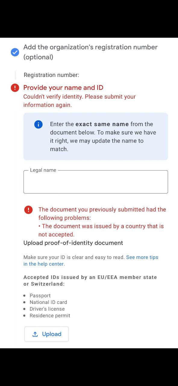 После изменения типа аккаунта на бизнес, просят ввести доки компании и ее адрес, с этим нет проблем. Но далее идёт запрос на личные данные и документ резидента ЕС, с обязательным адресом на Кипре. Не уверен какое именное лицо их интересует именно я, владелец, директор или кто угодно имеющий отношение к компании, поддержка пока молчит.