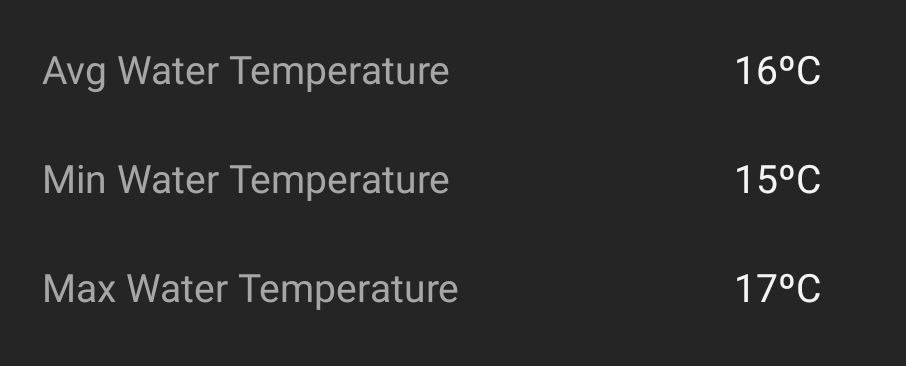 Меньше +16 С° не видел, но я не настоящий дайвер.