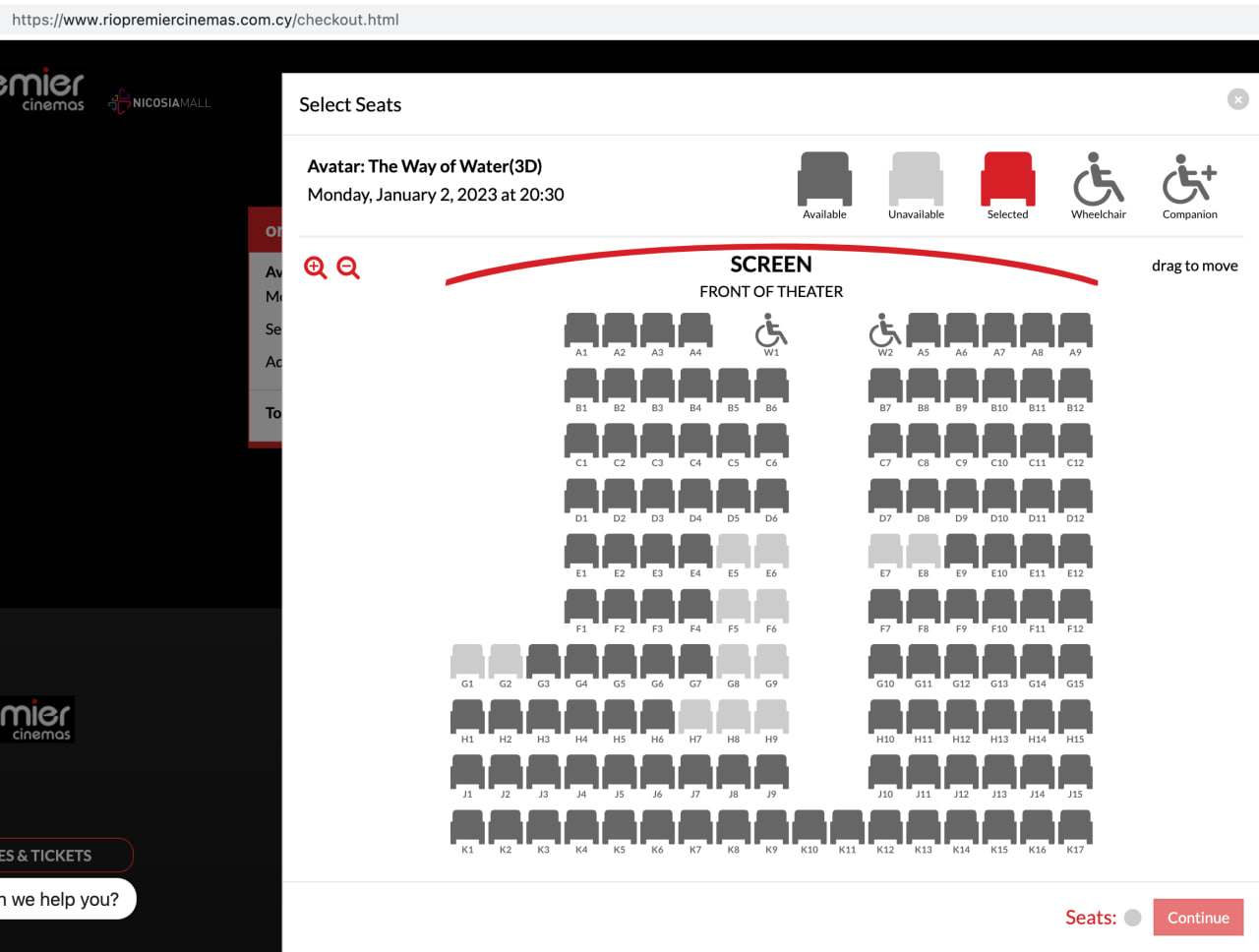 Мы на 'Black Adam' брали билеты в кинотеатре Rio на кассе, прямо перед фильмом. Зал достаточно большой (по крайней мере тот, где мы были). Садишься на любое свободное место.