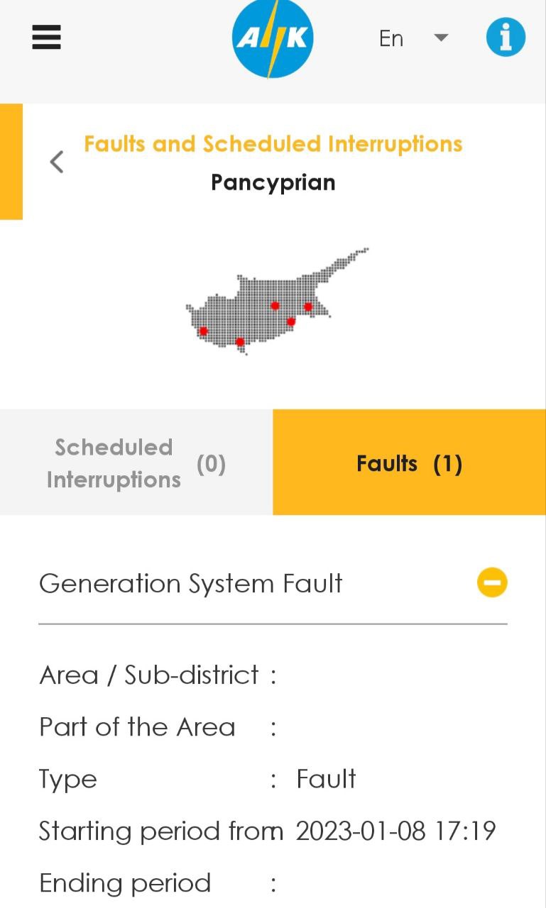 Привет, в Гермасойе нет света, а на сайте в outages ничего. По 1800 никто не отвечает, только try again later. Кто-то что-то знает?