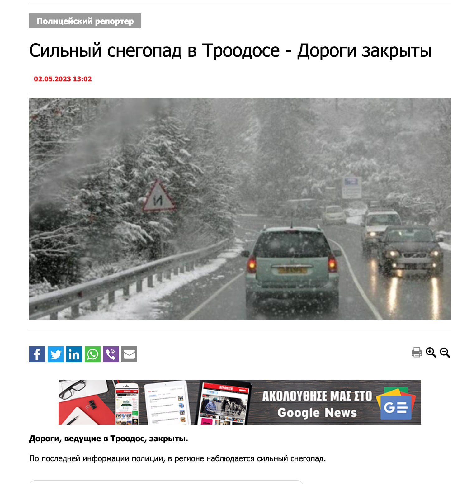 ‼️‼️ Из-за сильного снегопада закрыты для ВСЕХ транспортных средств дороги, ведущие в Троодос.