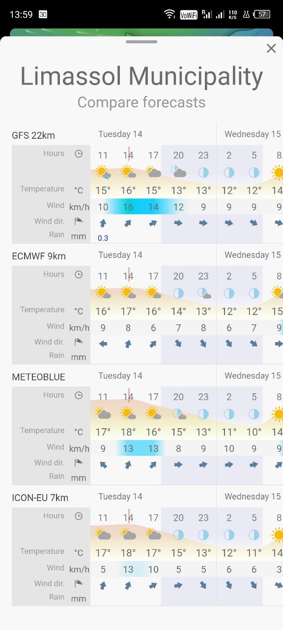 @cyvespна windy тоже есть сравнение моделей/прогнозов) я верю больше GFS модели, сегодня тож правильно показало микро-дождик днём, в отличие от ECMWF)