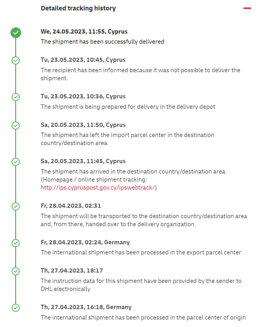То, что это "простая почта" их ни разу не оправдывает. Даже в РФ "простая почта" за это время до Владика из Москвы и обратно довезёт. А тут вроде как ЕС. Что-то мне подсказывает, что просто много всего на Кипр сейчас едет и capacity у них не справляется.