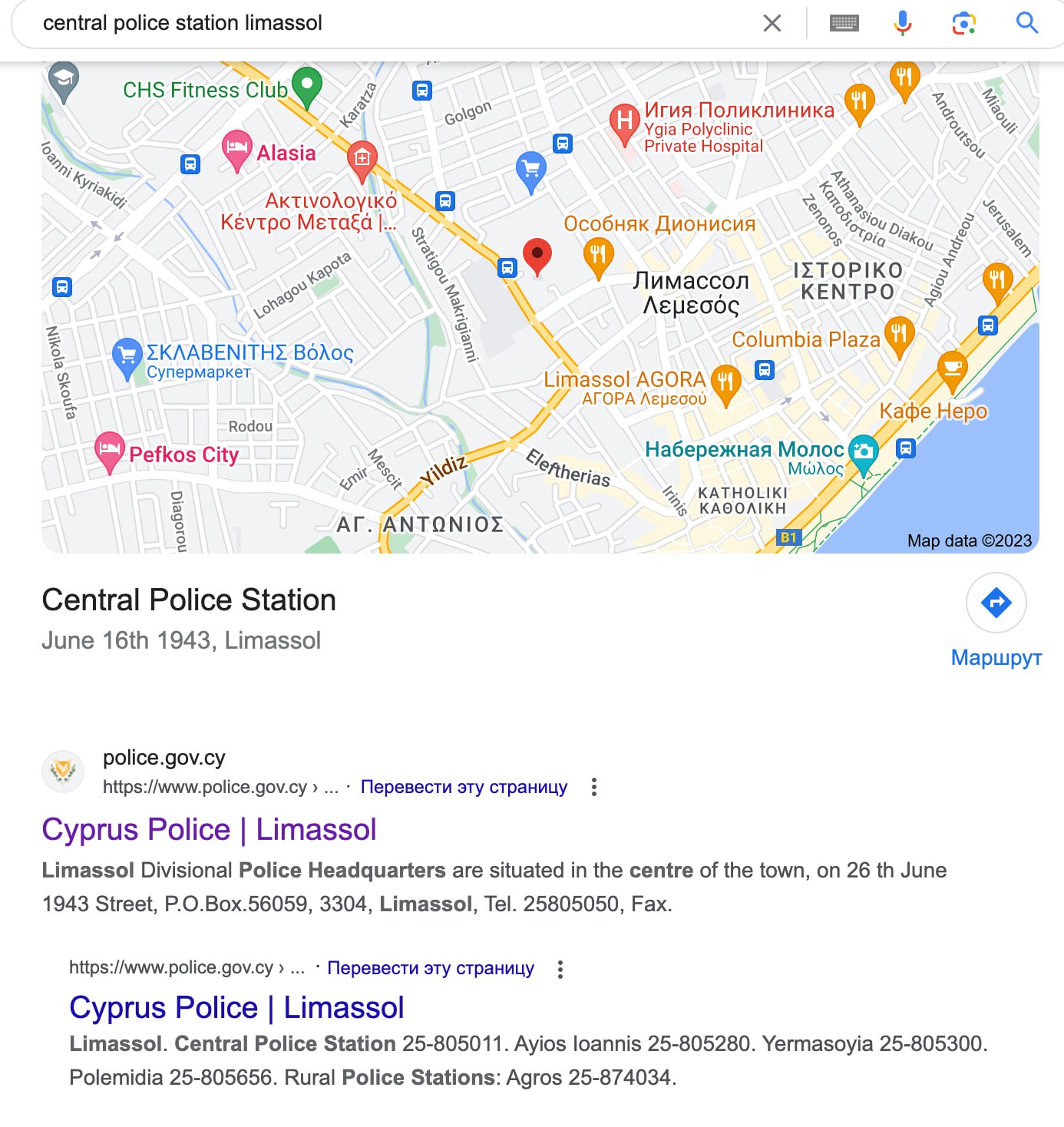 Будет ссылка на раздел сайта Полиции Кипра именно про это отделение в Лимассоле.
