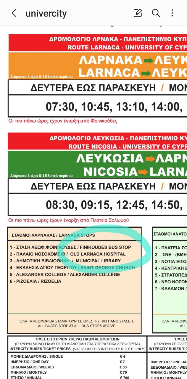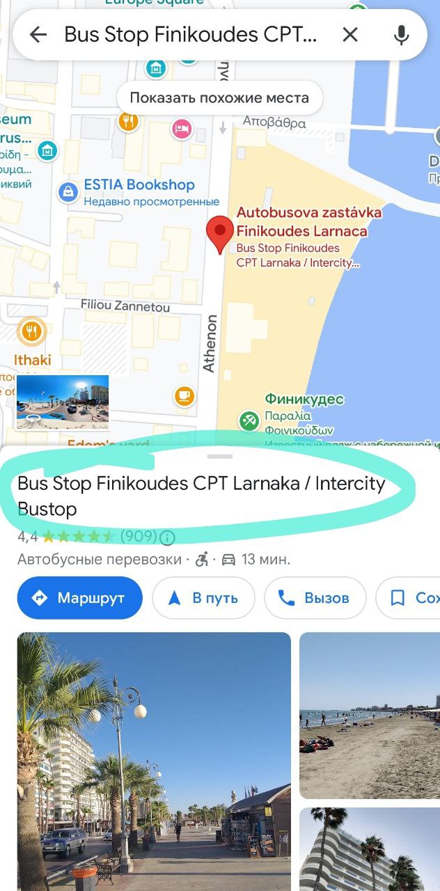 На другом сайте есть остановки. Тыкаешь маршруты, выбираешь по направлению, там внутри есть остановки из Никосии (например). Жмакаешь - и показывает на карте. НО расписание на этом сайте и на интерситибусес - не совпадает. Тут, кажется, что неправильное. Но есть остановки 😁 https://m.cyprusbybus.com/routedetails/190