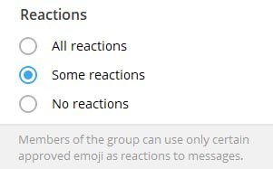 да, some reactions вроде как убирают возможность ставить этот мусор, по крайней мере список возможных реакций ограничен только встроенными, в отличие от этого чата