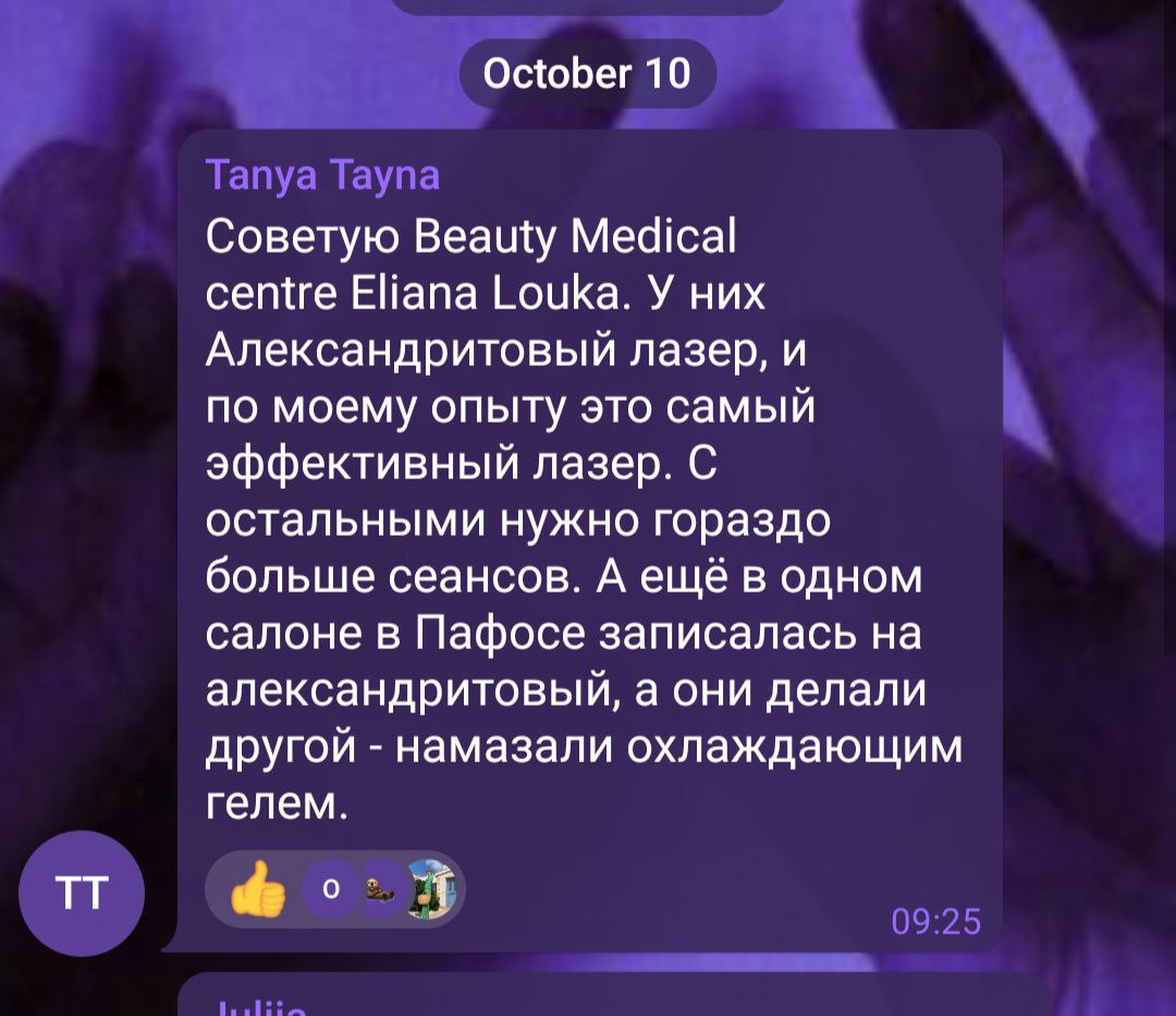 Подскажите, кто-нибудь в Пафосе знает хорошее место где лазерную депиляцию можно сделать?