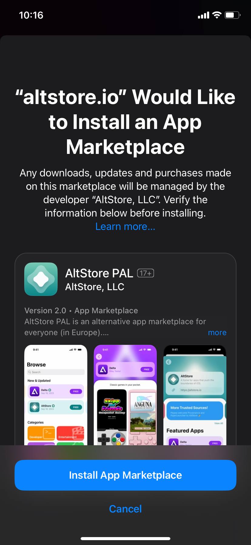 Это про новый AltStore PAL, который по ЕС регуляции из Safari должен ставиться
