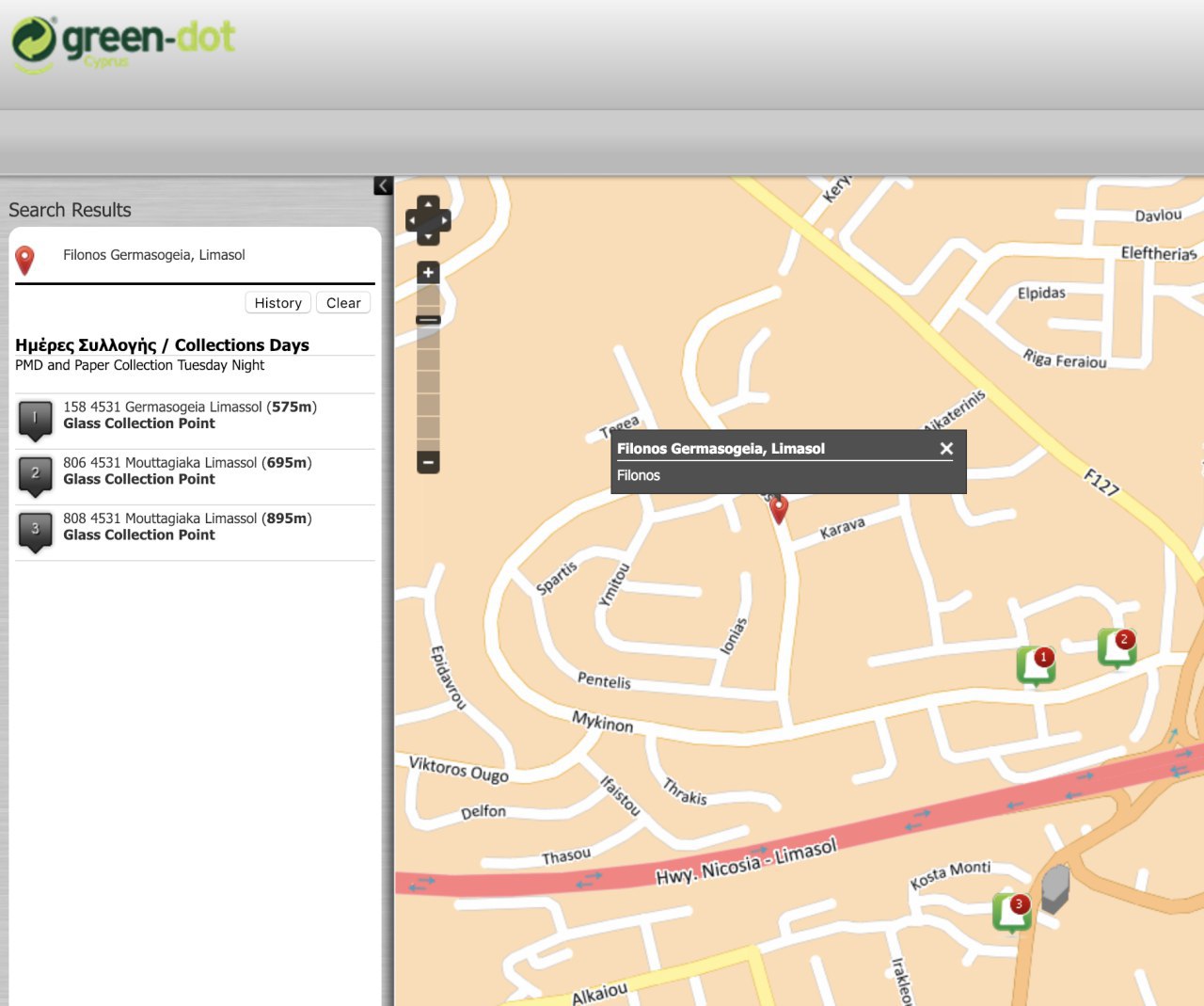 Находите свое местоположение, нажимаете правую кнопку, выбираете "What's Here" и получаете расписание вывоза пластика/бумаги и ближайшие контейнеры для стекла.