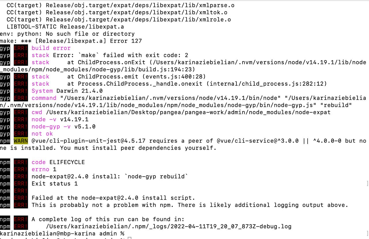 @kari_morozovaВ новом проекте делаю npm install и выбивает ошибку. Для решения сделала все из статьи https://codeforgeek.com/make-failed-with-exit-code-2/ но ничего не помогло. Это проект на новой работе, и я in despair. Насколько я поняла ошибка в ребилде какого-то node-gyp, но я никак не пойму что за зверь. Может у кого-то есть 5 минут и я расшарю экран? Или предположения как пофиксить?