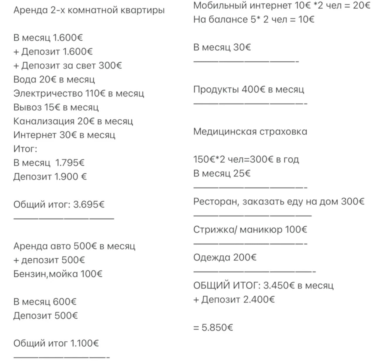 Добрый день! Собираюсь в сентябре переместиться на Кипр, пытаюсь сориентироваться в ценах и наткнулся на такие расчеты от человека, который живет в Лимассоле. Насколько это близко к правде? :)