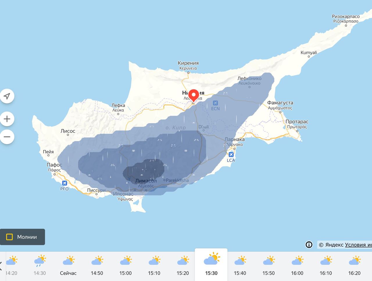 Лимасол, был дождь у кого-нибудь? Мы так и не дождались, а судя по карте, он уже ушёл :(