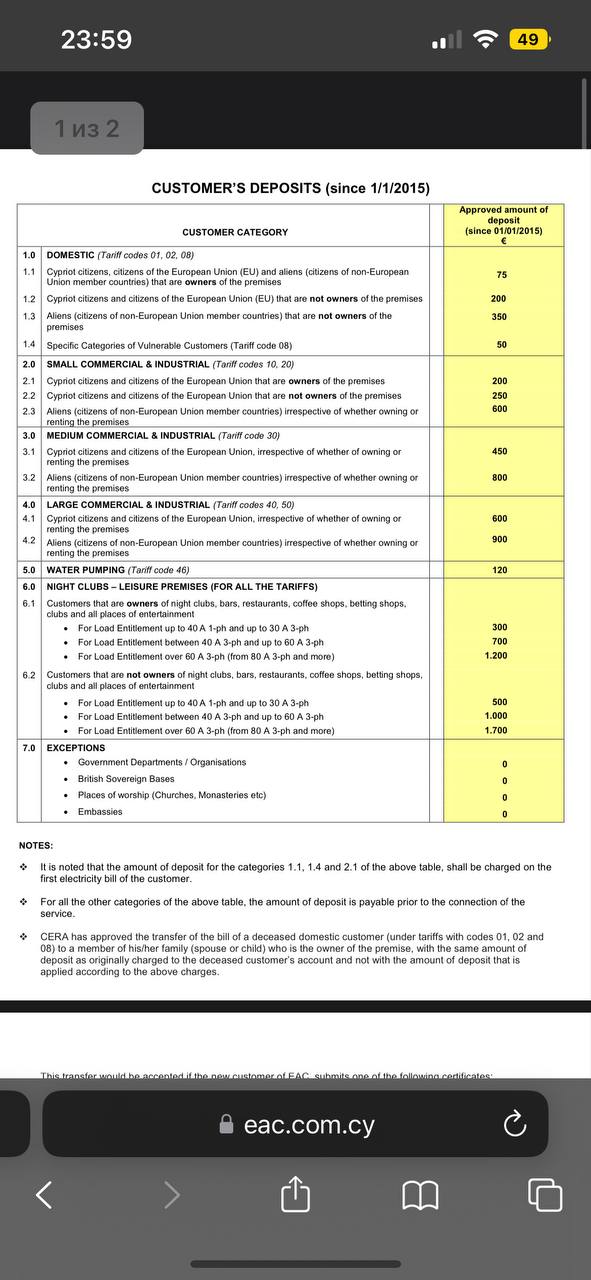Подскажите, пожалуйста, какой сейчас депозит за переписывание электричества на имя нового съемщика? И есть ли разница если он гражданин ЕС?