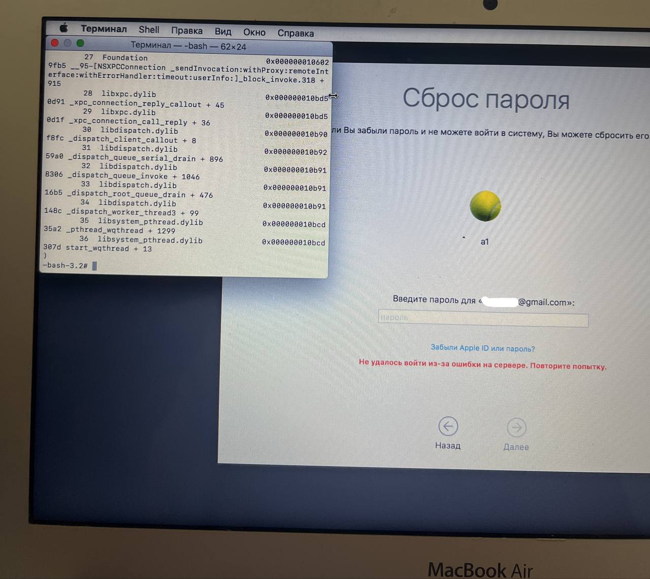 Кто знает как победить эту ошибку? Не могу сбросить пароль на пользователя. Гугл не знает. Пробовал WiFi и через провод.