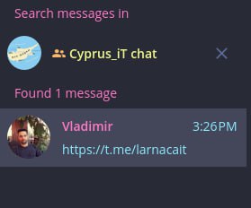 Ребята привет))) Подскажите пожалуйста it чат Ларнаки