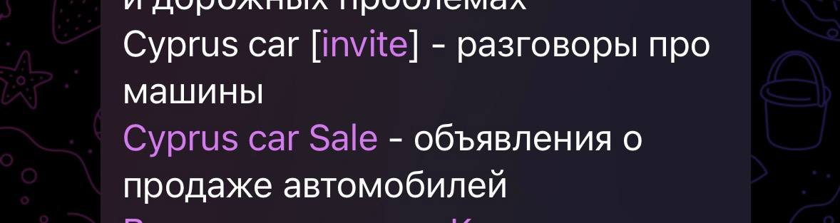 Ребят, доброе утро. А как можно прыгнуть в чатик Cyprus Car из закрепа, а то меня форвардит на бот.