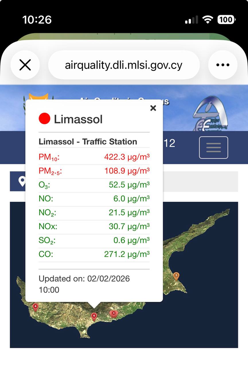 @EnsRationisИ в Лимассоле тоже сильное превышение по частицам PM10.