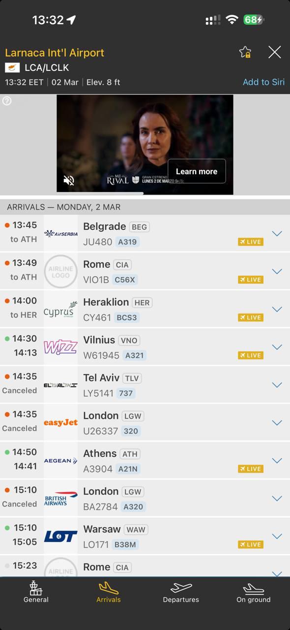 @d_yurkinBelgrade - Larnaca развернули в Афины (хотя он крутится, может ждет что откроют):
