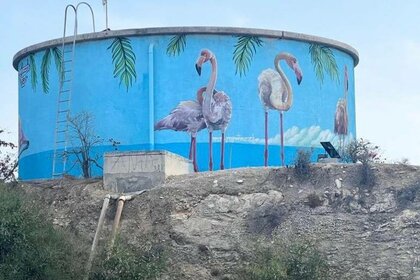 Резервуар у солёного озера украсили граффити с фламинго.