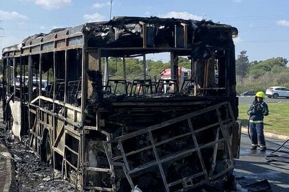 В Айя-Напе, выполняя маршрут, полностью выгорел пассажирский автобус