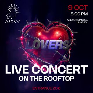 Если вы соскучились по камерным, но качественным живым концертам - не пропустите выступление группы LOVERS! 9 октября встречаемся под ночным небом Лимасола, чтобы разжечь крышу живым звуком, чистым драйвом и энергией глэм рока!