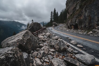 Огромные валуны полностью перекрыли дорогу.
