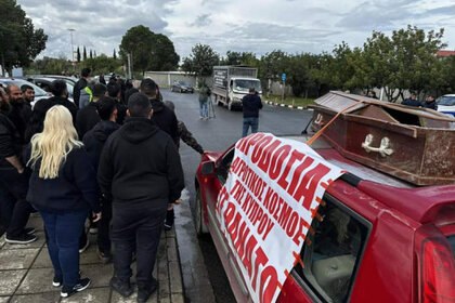 Фермеры принесли гроб к Президентскому дворцу в Никосии
