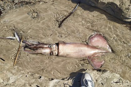 На пляже в Пафосе найден гигантский мертвый кальмар
