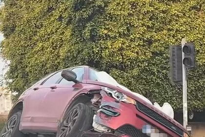 В Лимассоле внедорожник вылетел на пешеходную зону и повис на ограждении