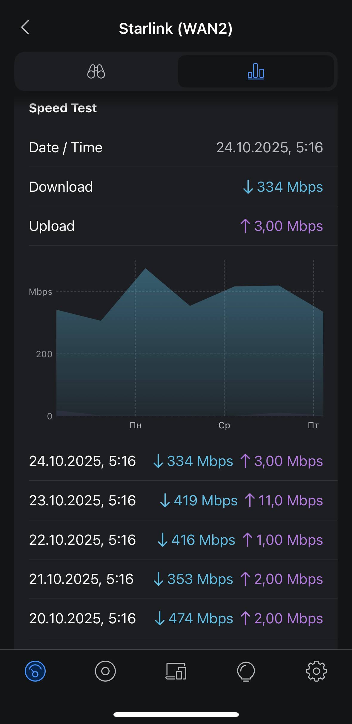 В среднем 300 вниз, 30 вверх. +- стабильно. стриминг игры на плойке часто сыпятся по кадру.