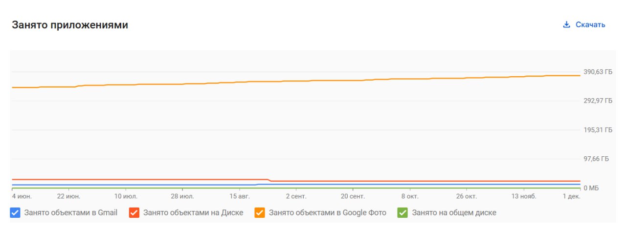А в другом 472 гига, тут он считает объем занятого с учётом "бесплатных фото" и прочего не входящих в лимит (в моем примере 17 гигов).