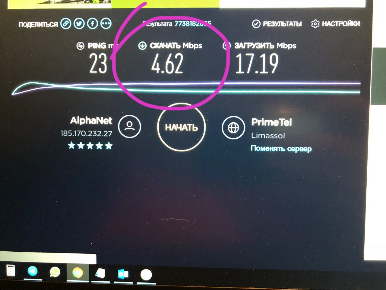 @alex0cyОзнакомьтесь с результатом, полученным мной с использованием Speedtest! Насколько быстрый ваш Интернет? https://www.speedtest.net/my-result/a/4359443661