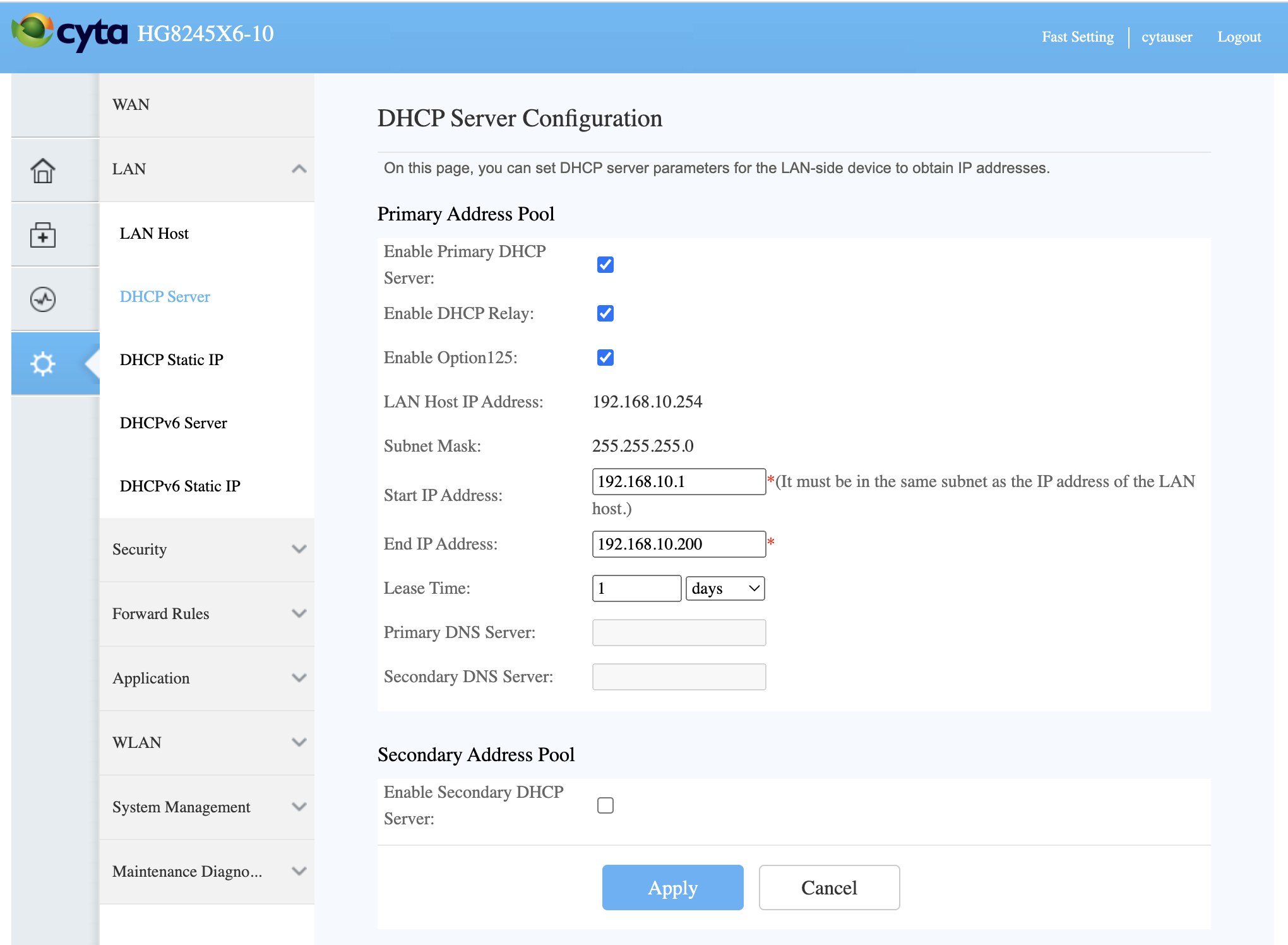 Подскажите пожалуйста какой у Cyta модема пароль? Заходишь по адресу 192.168.10.254, а пароль ни от первой Нетворк на модеме ни мой изменённый от сети не подходят.