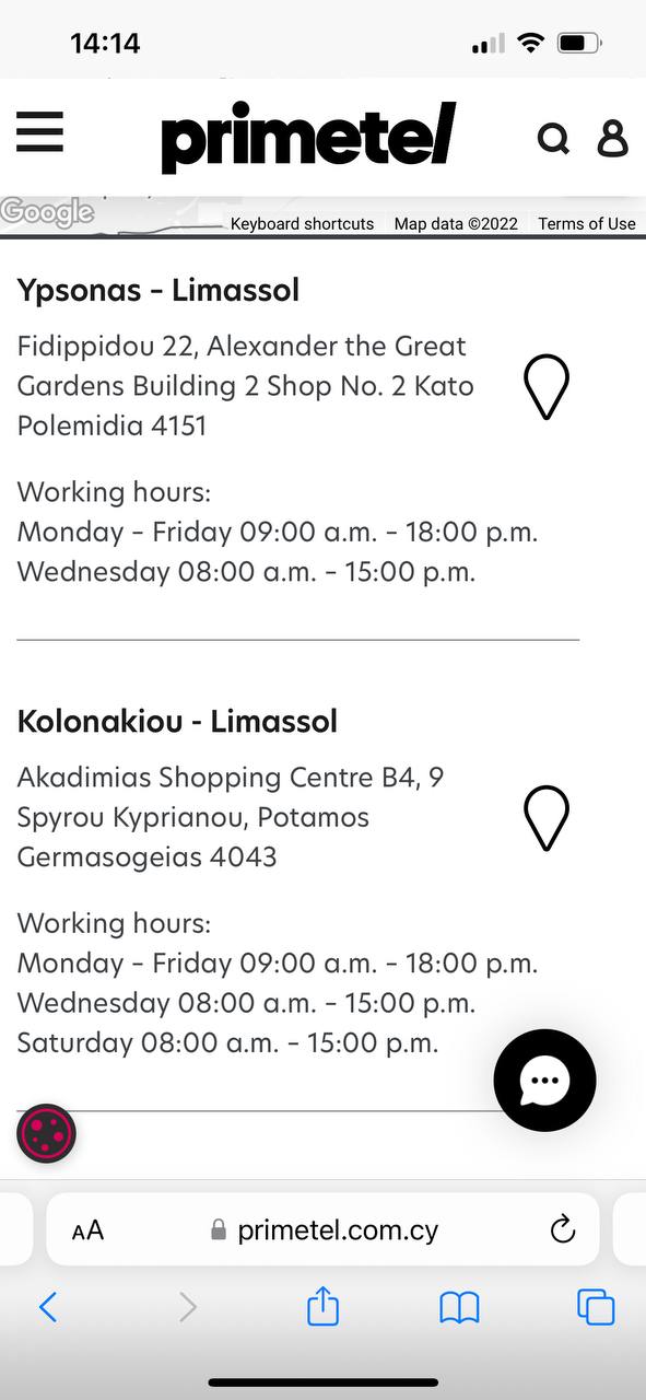 Здравствуйте, хотела оформить себе esim primetel. Подскажите, получается только в 2х местах можно оформить primetel в Лимассоле? Нашла на сайте у них только 2 адреса.