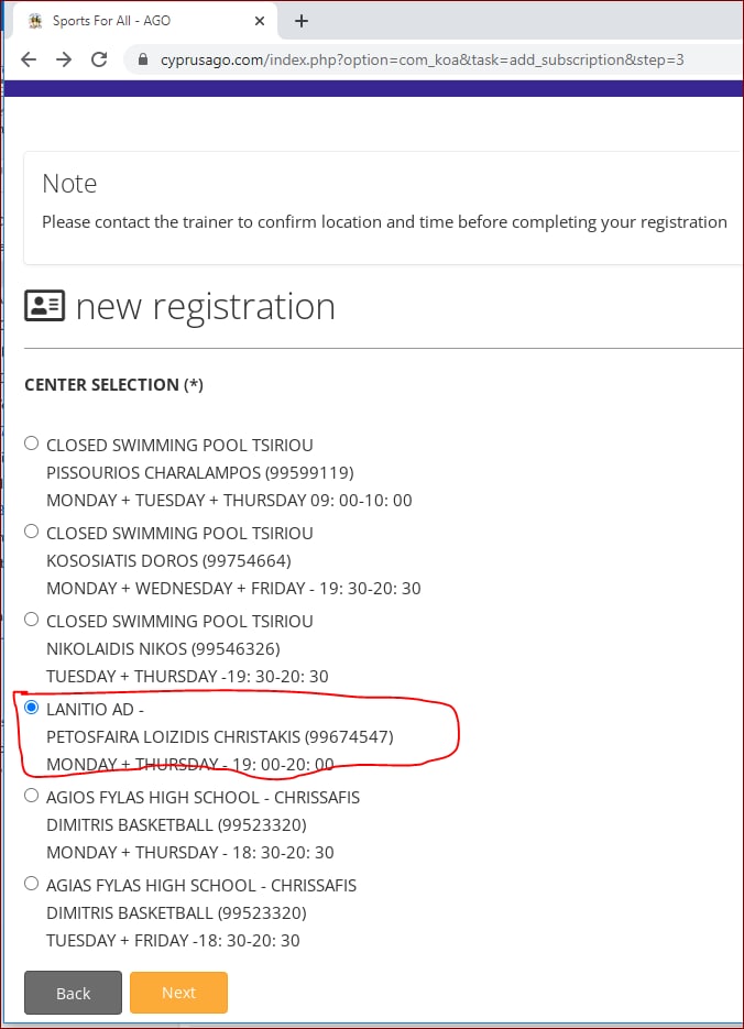 Make registration and then go to security forces then choose volleyball then instructor Christakis Loizides.....