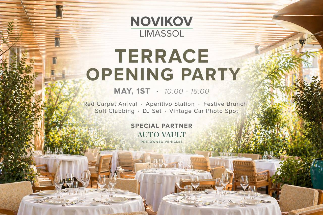 1 мая ресторан Novikov Limassol приглашает на Terrace Opening Party — дневную вечеринку, посвящённую долгожданному началу летнего сезона.