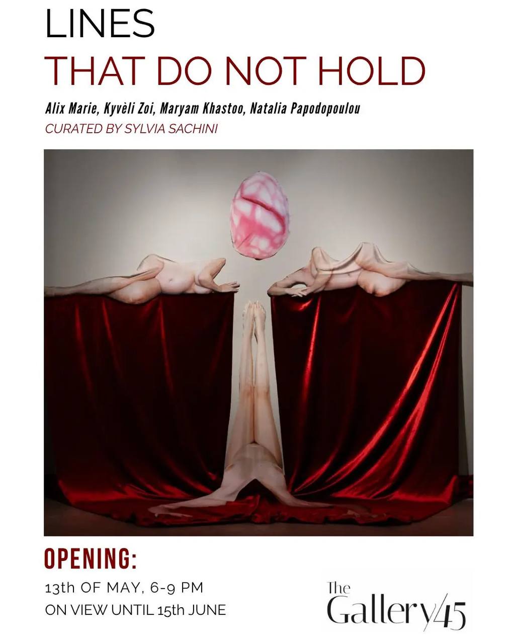 Через живопись, фотографию, инсталляции и видео художники ставят под сомнение линейные системы, которые пытаются определить пространство, время и тело. Вместо этого они предлагают формы, возникающие через фрагментацию, повторение и трансформацию.