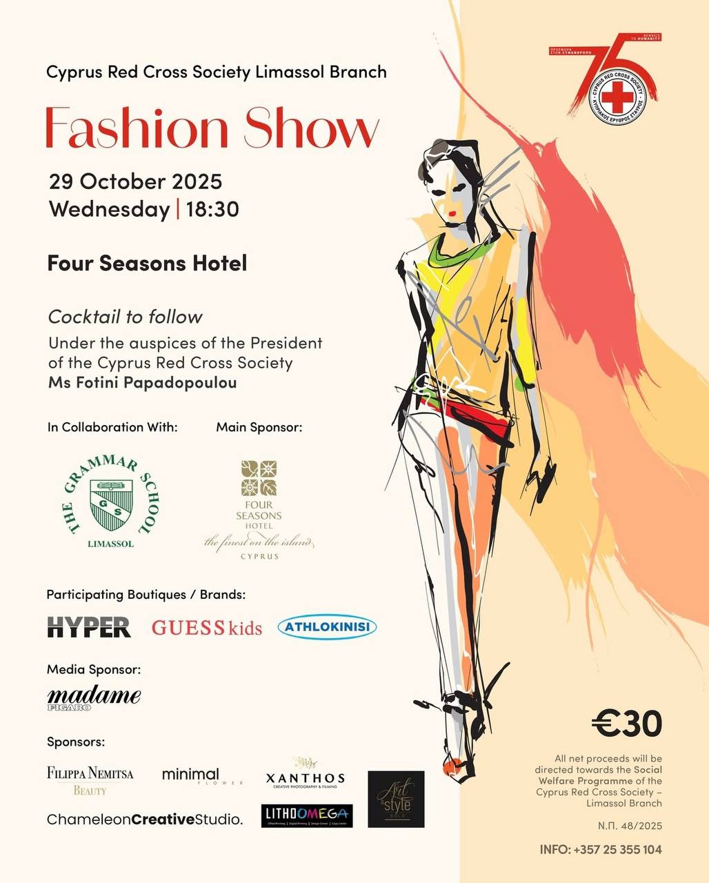 Кипрский Красный Крест - отделение в Лимассоле, в сотрудничестве с Grammar School Limassol и магазинами HYPER, ATHLOKINISI и GUESS KIDS, организует гламурный вечер 29 октября в отеле Four Seasons.
