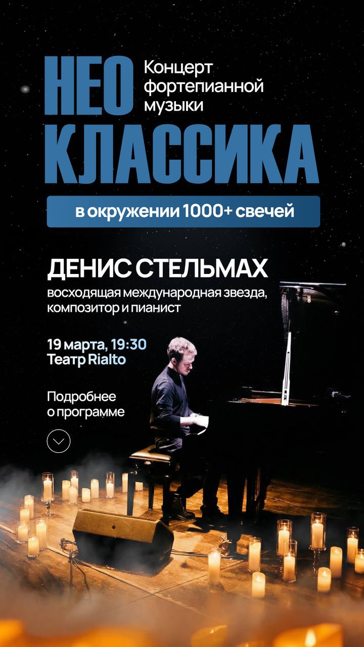 Денис Стельмах — неоклассический пианист и композитор, чья музыка, по словам критиков, «свободна и чиста, глубока и прозрачна». Выступал в Петербургской филармонии, на Ural Music Night, в Опере Астаны. Миллионы слушателей. Discovery Channel. Пять альбомов о самом главном.