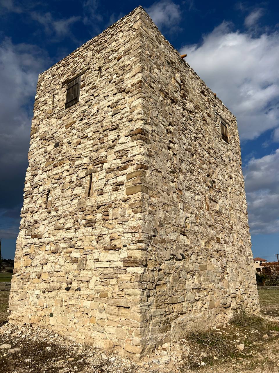 Итак, первая башня, если ехать из Лимасола, находится в деревне Аламинос. В период франкского владычества эта деревня была одним из крупнейших фьефов Франкского королевства Кипр, расположенным в центре плодородной сельскохозяйственной округи.