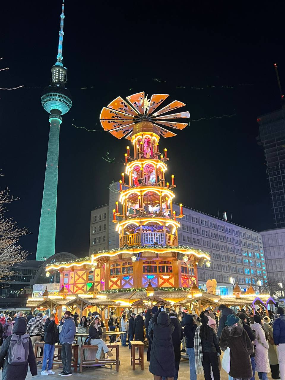 25 декабря, ранний вечер, один из берлинских Рождественских рынков, тот, что на Александрплац. Несмотря на -6С за бортом, много народа пришло попить глювайн, поесть карривурст, отстоять очередь за чуррос и просто весело провести время.