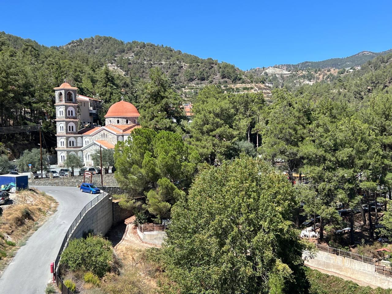 Соглашусь, что торговых рядов всего одна коротенькая улица, зато есть шикарная территория под сенью сосен для поглощения тут же приготовленных бургеров, лукумадес и прочих сувлак с шефтальями. Именно так и любят отдыхать киприоты — мясо, пиво и народная лирика под заунывную бузуку. Но нет, не привлёк киприотов Димес. Или же все подтягиваются ближе к вечеру?