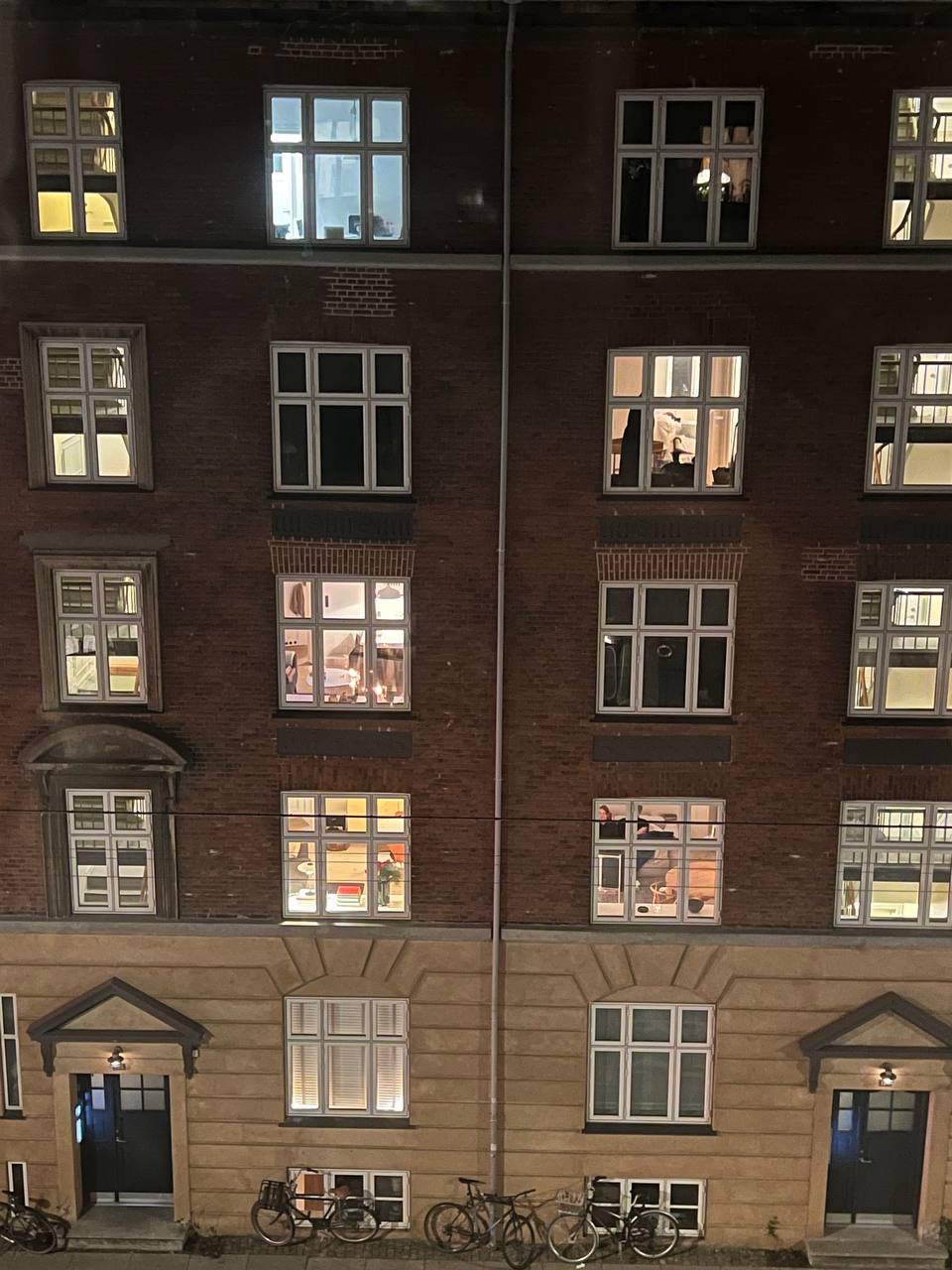 И вот в Дании, в Копенгагене, я снова поймала это ощущение. С нашего верхнего этажа соседские окна просматривались очень хорошо. Жизнь соседей разворачивалась перед глазами: кто-то ссорится, кто-то мирится, кто-то пьёт вино, а кто-то залипает в телевизор. Честно — можно в кино не ходить 🙂