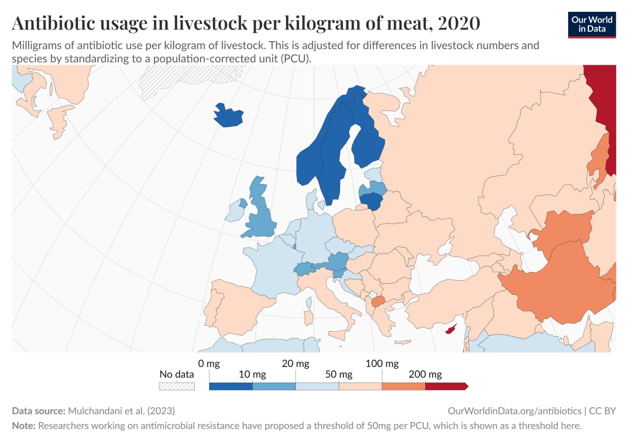 А теперь внимание: по статистическим данным в расчёте на килограмм живого веса скота Кипр использует антибиотиков в несколько раз больше, чем, скажем, Германия или Дания. Для сравнения в скандинавских странах этот показатель давно снижен до минимума, а у нас на острове стабильно держится на уровне, мягко говоря, настораживающем.
