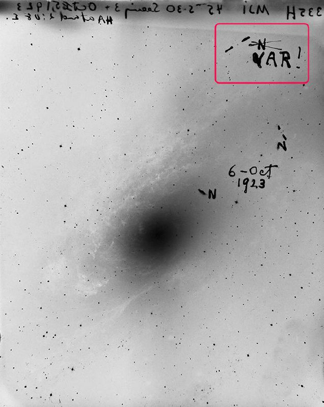 Именно её, в 1923 году, наблюдал Эдвин Хаббл, впервые заметив переменную звезду на фоне её звёздного моря. Та крошечная отметка VAR! на стеклянной пластинке изменила представление человечества о Вселенной — М31 оказалась не туманностью в пределах нашей Галактики, а целым миром, удалённым на два с половиной миллиона световых лет.